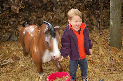 Since Jack was afraid of feeding the live goats he opted for feeding the plastic horse instead :)